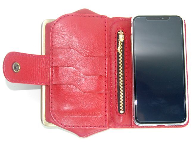 本牛革 がま口付き スマホケース カード収納 「レッド」