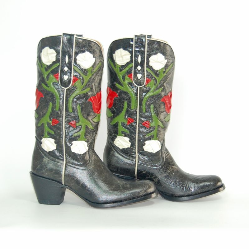 【24.0】 ローズインレイ 本牛革ウエスタンブーツ 商品番号 JV00201-240